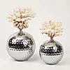 Doğal Mercanlı Dövmeli İkili Küre Gümüş