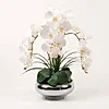 Yapay Islak Orkideli Gümüş Yassı Vazo
